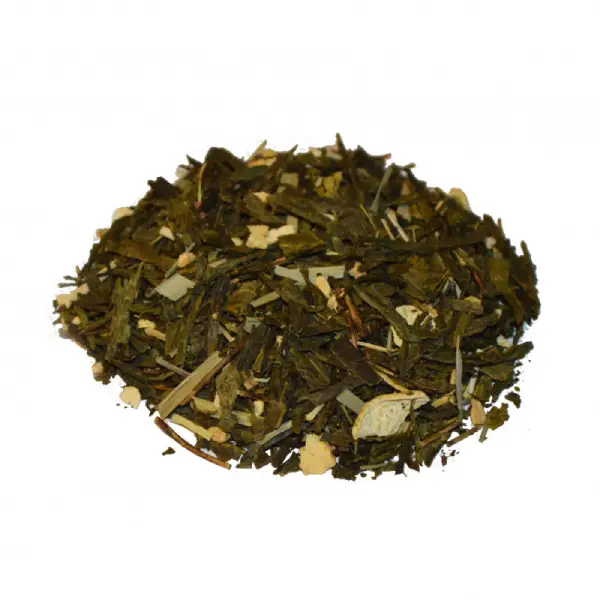 El té verde japonés utilizado en esta mezcla se cultiva en las regiones montañosas de Japón, donde las plantas de té se benefician de la bruma matutina y el sol de la tarde. El jengibre y el limón orgánicos utilizados en esta mezcla se cultivan de manera sostenible en diferentes partes del mundo.