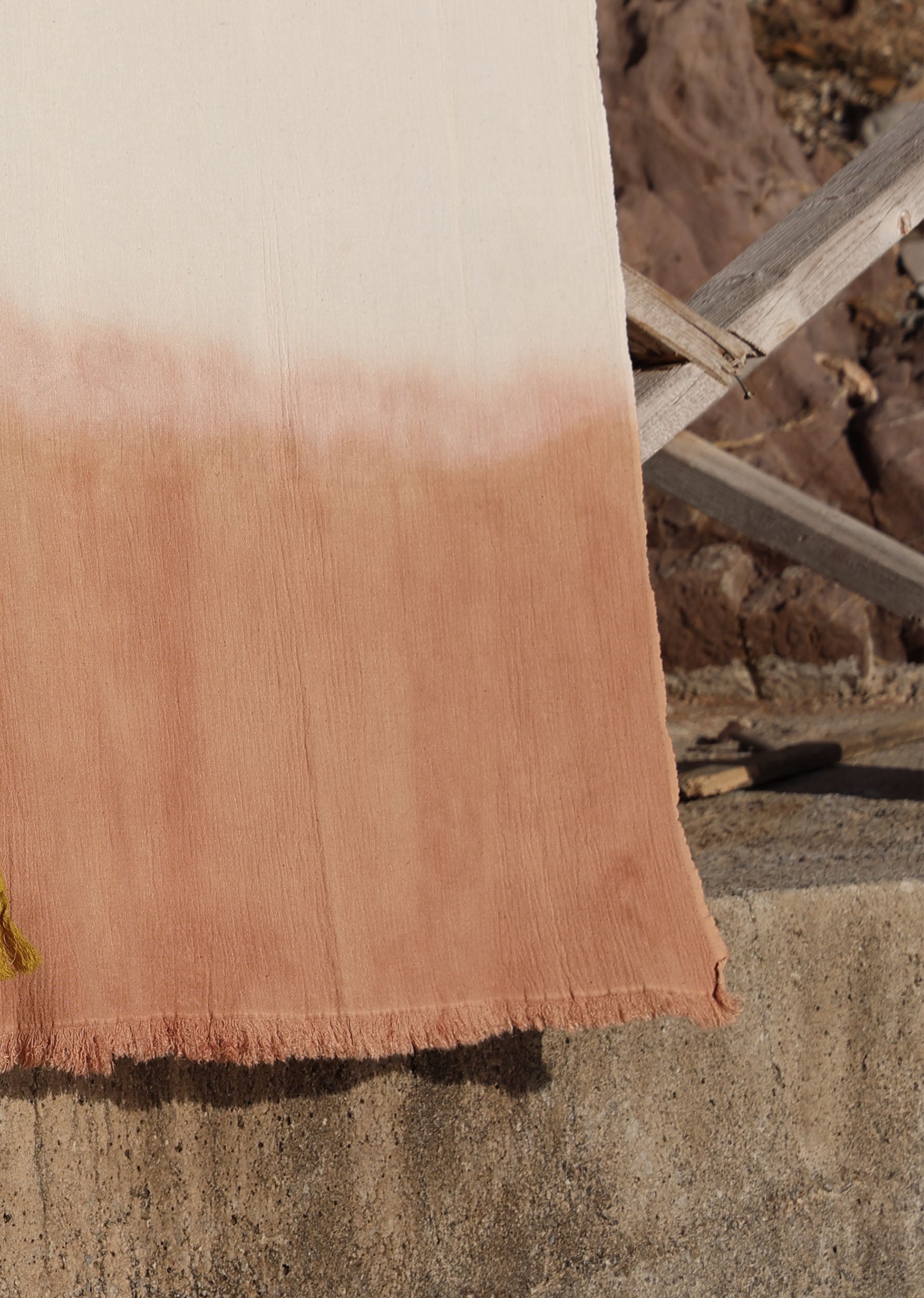 Toalla de algodón tejida artesanalmente en telares manuales. Gran capacidad absorbente, con textura suave y esponjosa. Comúnmente conocida como Buldan y utilizada originariamente en los hammam de la provincia homónima de Turquía. Puede utilizarse como toalla de baño, chal o manta de sofá.