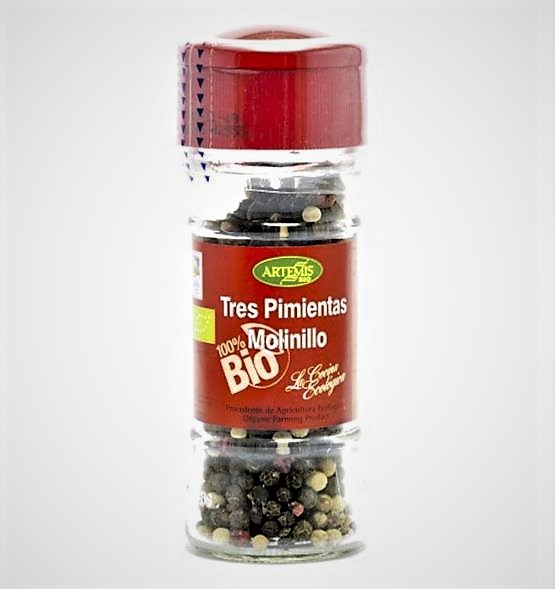 Mezcla de pimienta negra, blanca y roja. Una combinación muy suave y aromática, como alternativa a la pimienta negra o blanca.