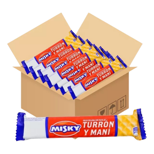 🥜✨ El clásico turrón de maní, crocante y delicioso. El Turrón de Maní Misky es una opción ideal para un snack rápido, aportando energía y un sabor irresistible. Su presentación en caja de 50 unidades de 25g lo hace perfecto para compartir, vender o tener siempre a mano.