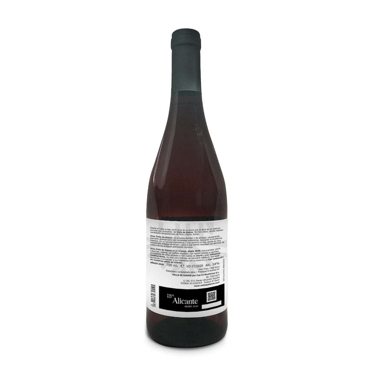 Vino de Diània Tinto es un crianza, natural, sin sulfitos variedad Cabernet Franc, con la mínima intervención también en su cultivo y recuperando viñas en los valles de interior.