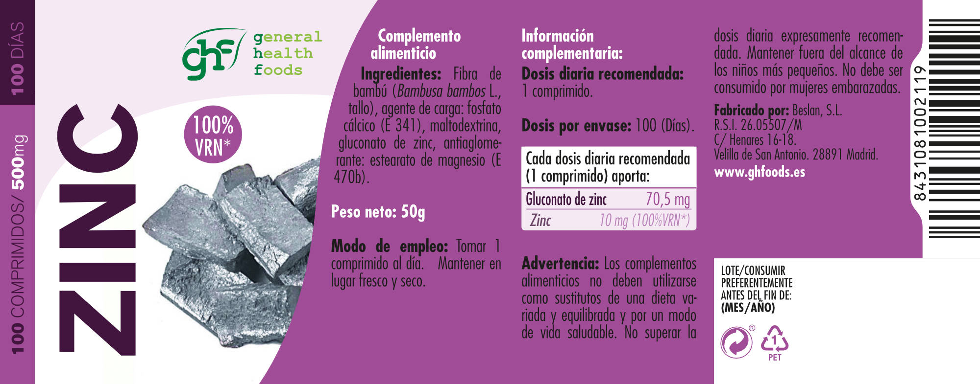 100 Comprimidos de 500mg. Peso neto 50g. |
