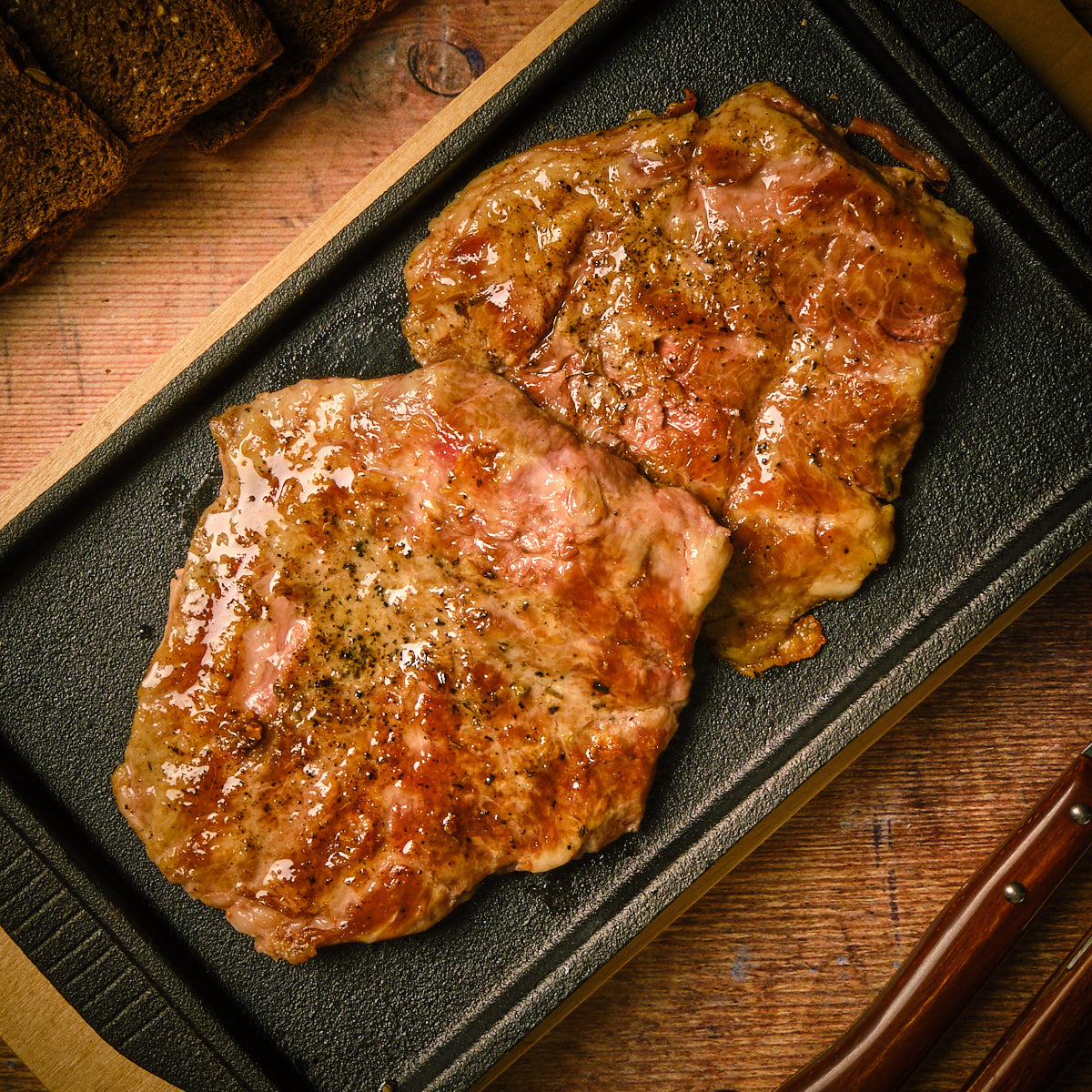 Abanico de cerdo ibérico asado 24 horas a baja temperatura. La textura del abanico ibérico es muy especial, ya que mantiene una mezcla ideal entre fibras y grasas, algo que lo convierte en un plato jugoso, crujiente y único. Un corte gourmet delicioso que no te dejará indiferente.
