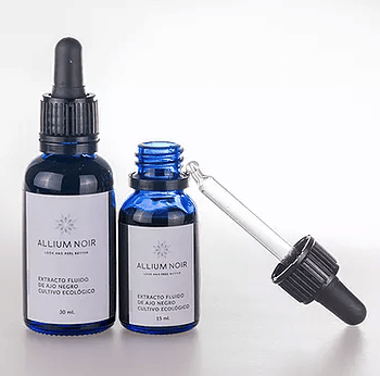 Por 30 gotas: Tintura de ajo negro de cultivo ecológico (Allium sativum): 0,83 ml Extracto oleoso de Haematococcus pluvialis: 0,17 ml Solución hidroalcohólica.