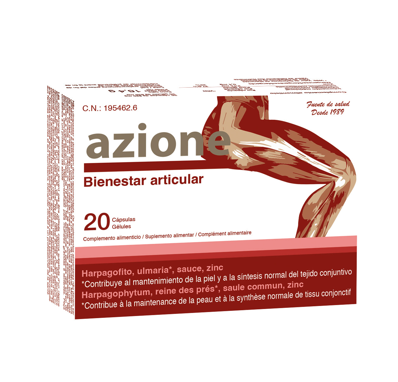 Azione es una combinación de activos naturales. Gracias a unos estudios realizados en la Facultad de Químicas de la Universidad de Murcia se ha determinado que contiene 8 principios activos volátiles con función antimicrobiana, antioxidante y antiinflamatoria. El efecto antiinflamatorio y analgésico está producido por los harpagósidos y su contenido en salicilina que produce una inhibición de la enzima ciclooxigenasa dando lugar a efectos, antiinflamatorios, analgésicos y antipiréticos.