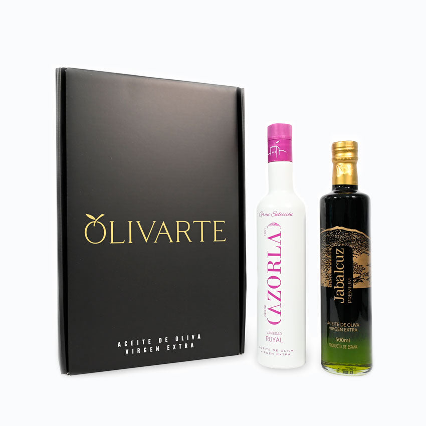 Estuche de Aceite de Oliva Virgen Extra de Olivarte con dos de los mejores aceites de oliva virgen extra de Jaén: