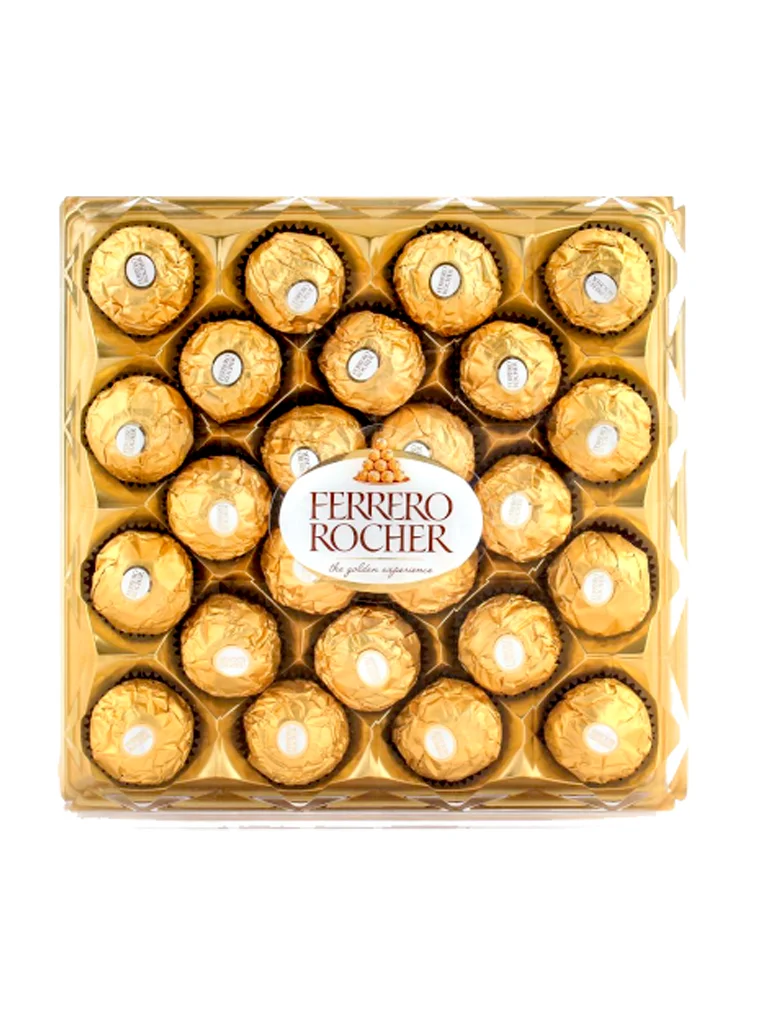 Ferrero Rocher 24 unidades es una caja elegante que contiene 24 deliciosos bombones de chocolate con leche y avellanas, envueltos en un crujiente barquillo y cubiertos de una fina capa de avellanas picadas. Estos bombones, conocidos por su sabor sofisticado y su presentación dorada, son perfectos para regalar en ocasiones especiales o para disfrutar en momentos de indulgencia personal.